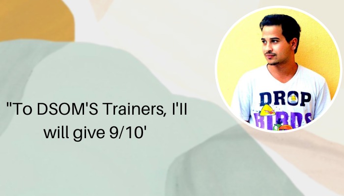 Nitin Bela ( DSOM Ex- student)- To DSOM’s Trainers I’ll give 9/10